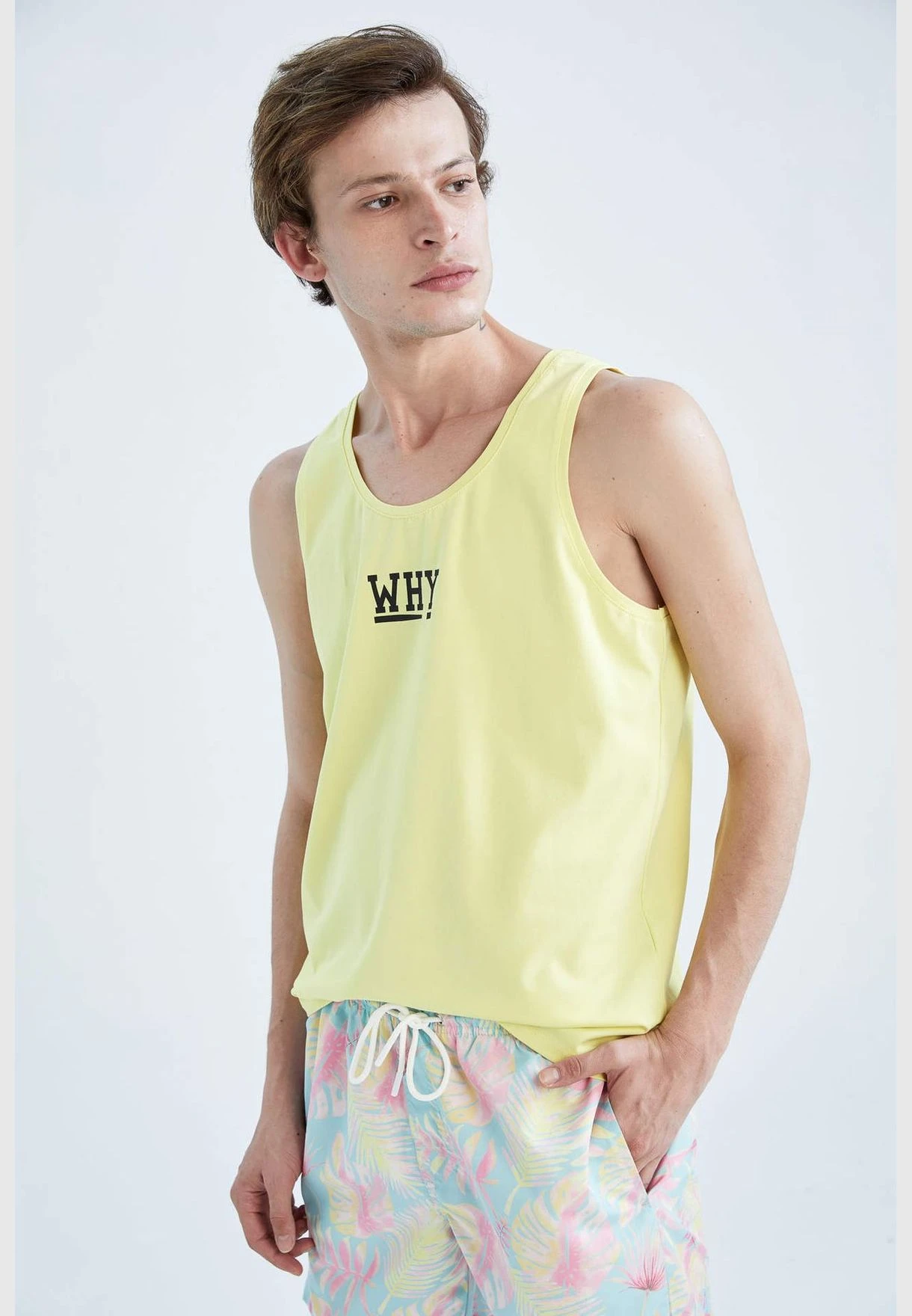 Man Slim Fit Crew Neck Sleeveless Vest yellow