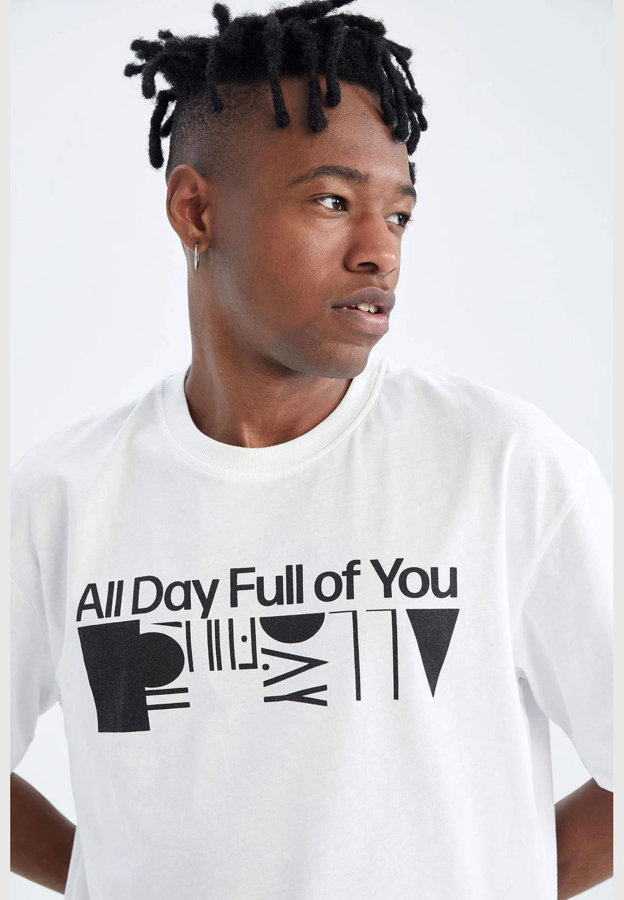 DeFacto Oversize Fit Crew Neck Short Sleeve Slogan Print T-Shirt