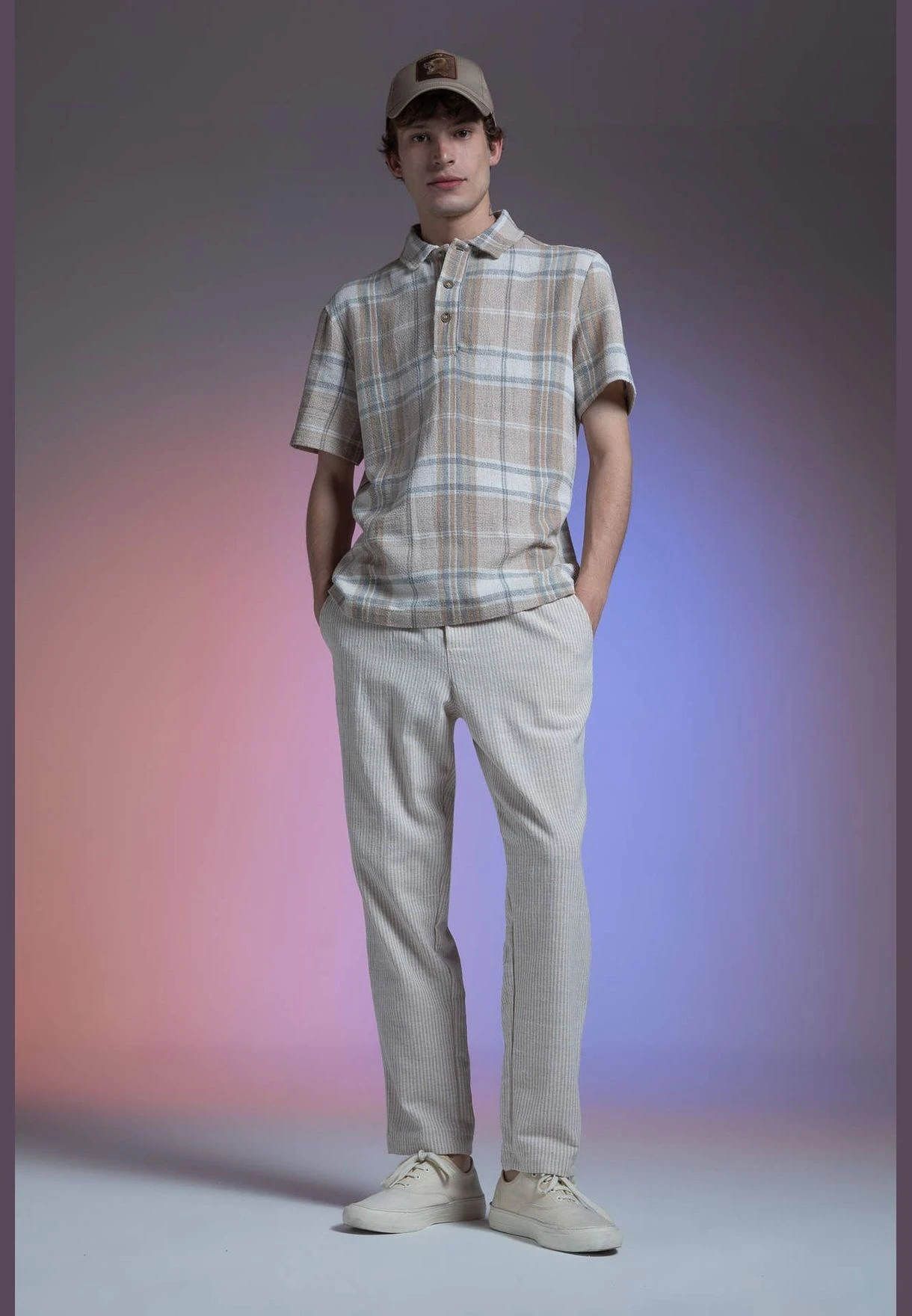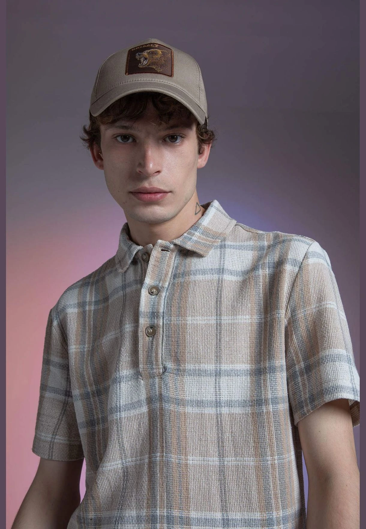 Regular Fit Short Sleeve Check Print Shirt beige