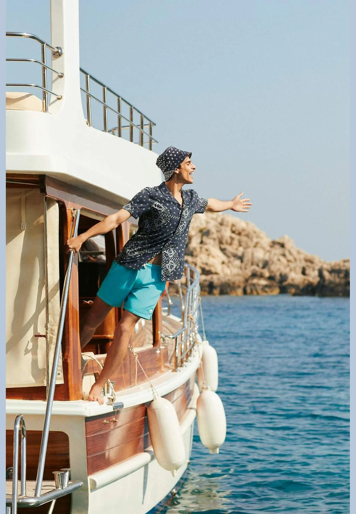 Regular Fit Short Sleeve Printed Viscose Shirt navy