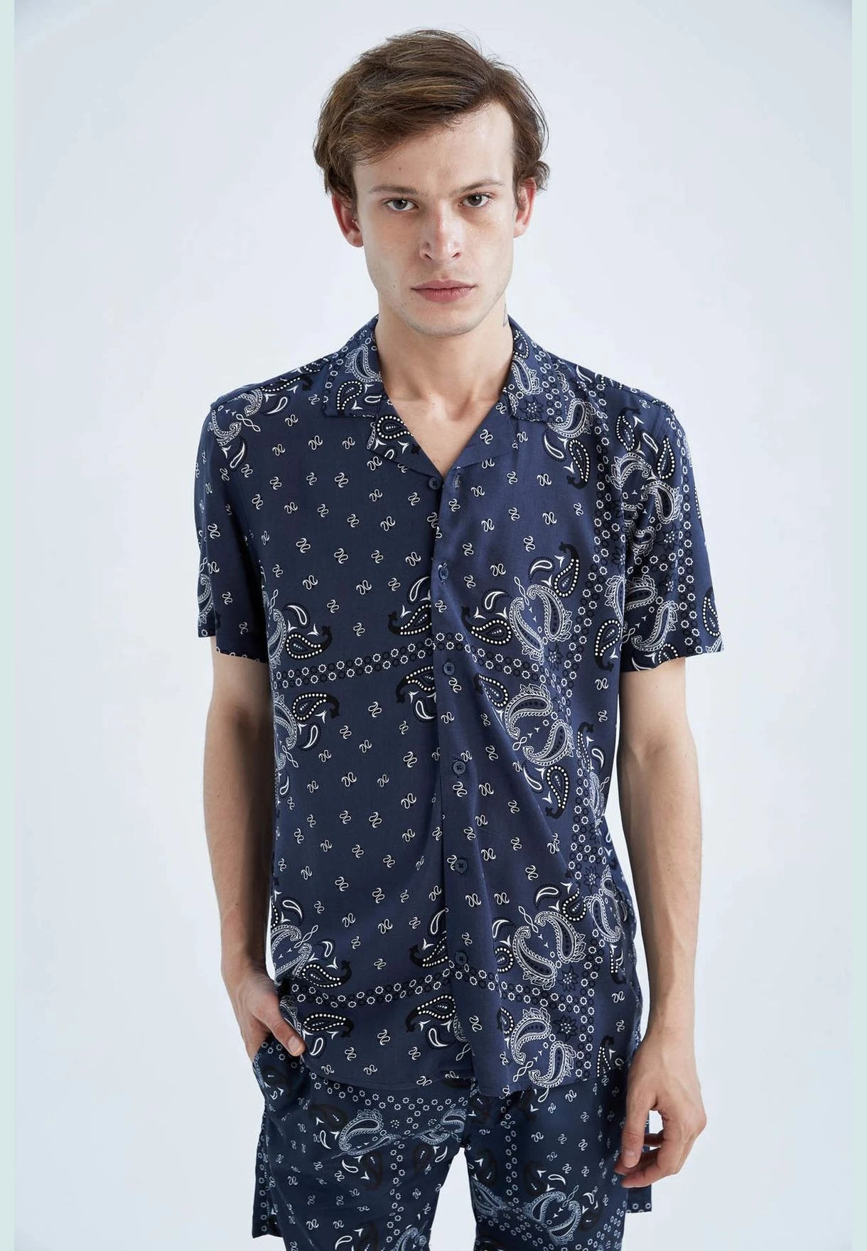 DeFacto Regular Fit Short Sleeve Printed Viscose Shirt
