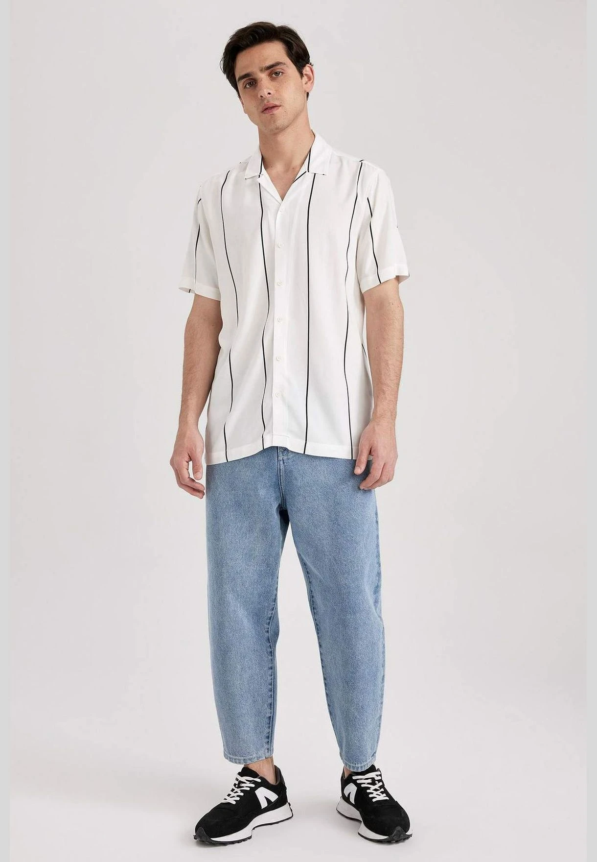 DeFacto Regular Fit Short Sleeve Striped Poplin Shirt