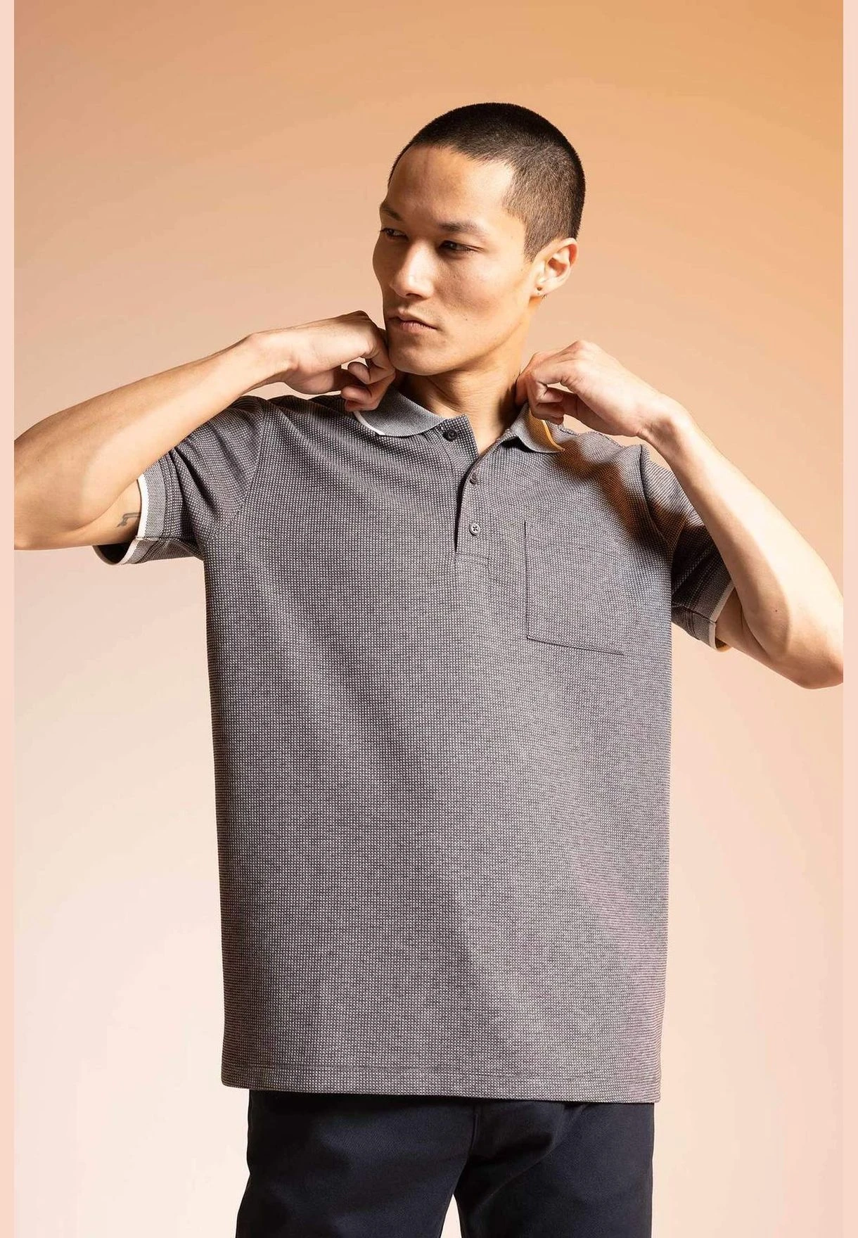 DeFacto Regular Fit Textured Short Sleeve Polo Shirt