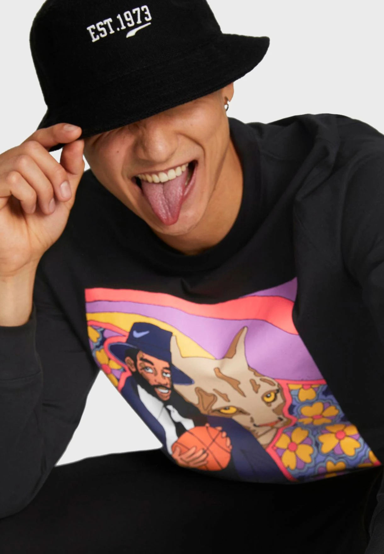 This graphic print t-shirt is designed for a relaxed fit featuring a slip-on silhouette.
