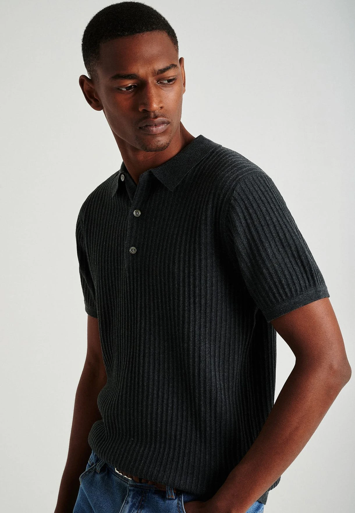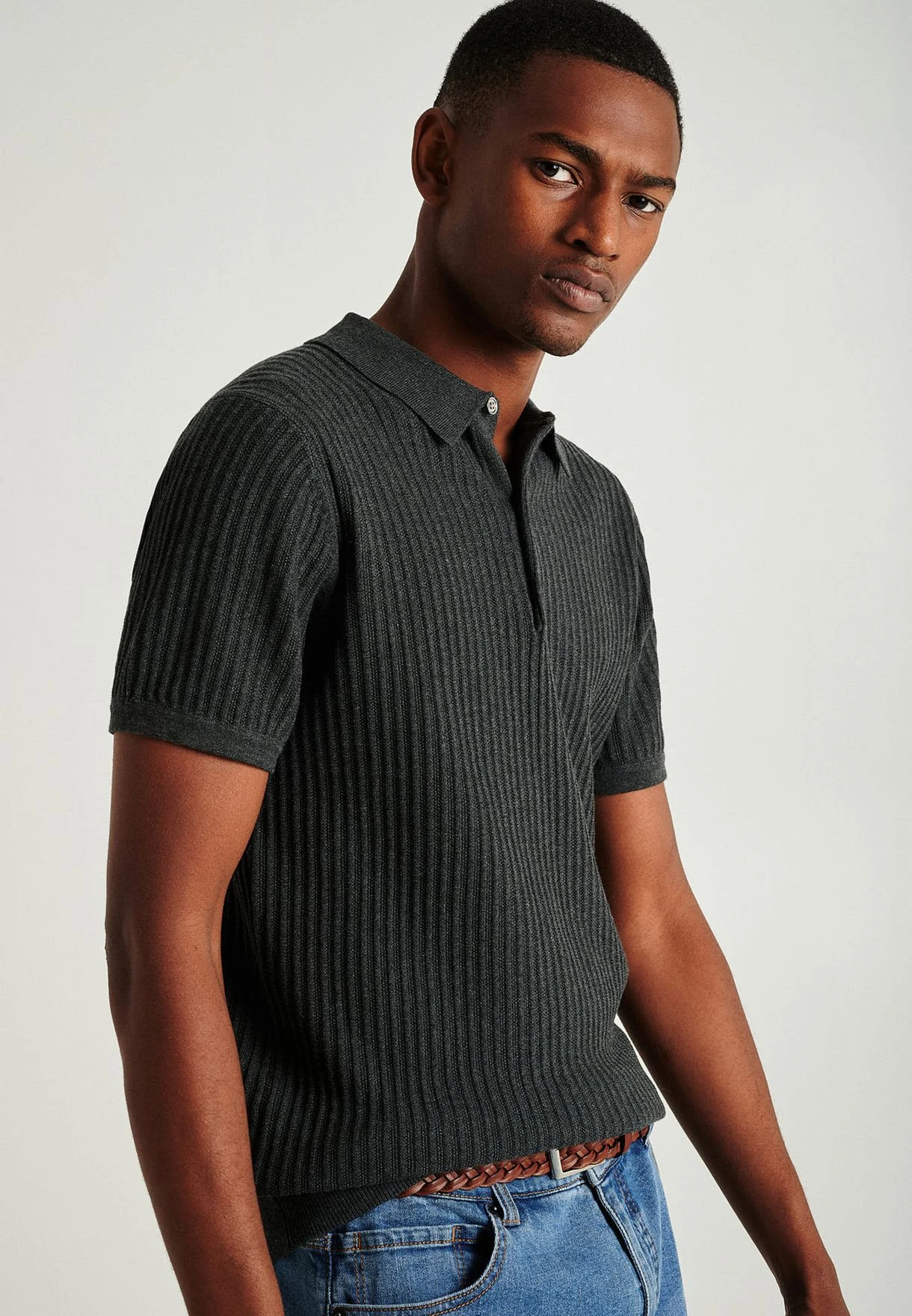 Ribbed Knitted Polo